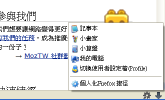 如本頁各項連結因 Mozilla Taiwan 公司網站修改而失效,請至 moztw-general 郵件群組 回報,我們將會儘速修復。